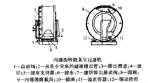 內(nèi)濾面轉(zhuǎn)鼓真空過濾機轉(zhuǎn)鼓圓筒長度小于圓筒直徑,其內(nèi)部外表鋪設(shè)過濾介質(zhì)。當操作條件不允許運用濾布時,可采用特別規(guī)劃的金屬絲網(wǎng)。在內(nèi)部接連加料,圓筒兼作料液槽。圓筒的一端打開呈圓環(huán)狀,便于查看全部過濾進程。圓筒作反轉(zhuǎn)運動,料液浸沒過濾介質(zhì)后,啟動真空即構(gòu)成濾講,通過脫水、洗刷期間后,在料斗的上,用反吹壓縮空氣脈動除渣,用皮帶運輸機或螺旋輸送機將濾渣排出。此種過濾機多在采礦冶金工業(yè)中用于處理量大、易過濾的物料。